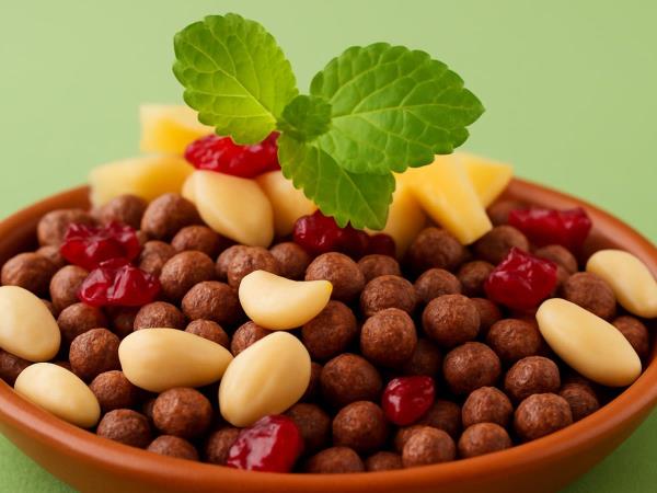 Mit Nüssen angereicherte Lebensmittel liefern dem Körper viele gesunde einfach- und mehrfach ungesättigte Fettsäuren. Die Auswahl ist groß (Haselnüsse, Walnüsse, Mandeln, Pistazien …), daher findet sicherlich jeder etwas Passendes. Achten Sie nur darauf, dass die Nüsse nicht gesalzen sind.